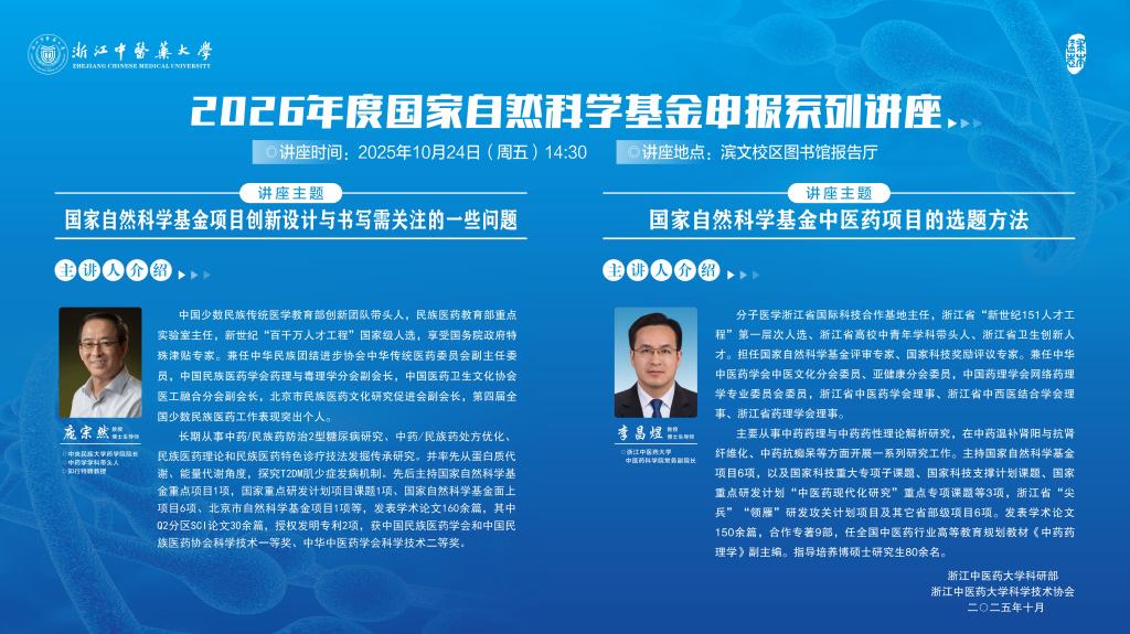 主 题:《国家自然科学基金中医药项目的选题方法》
