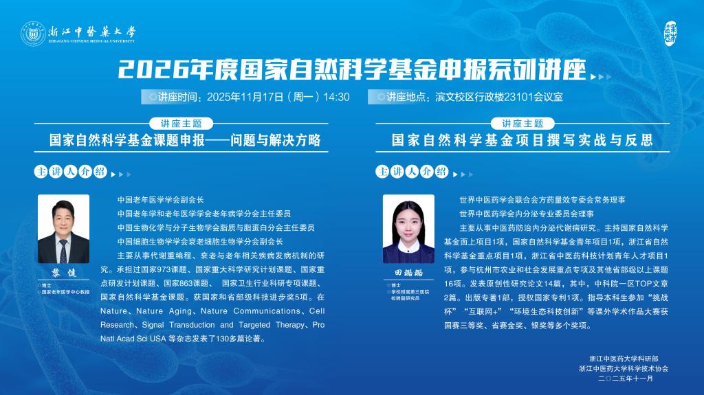 为做好2026年度国家自然科学基金项目申请工作,提升项目申报质量,学校开展国家自然科学基金申报系列讲座,现将有关事项通知如下: